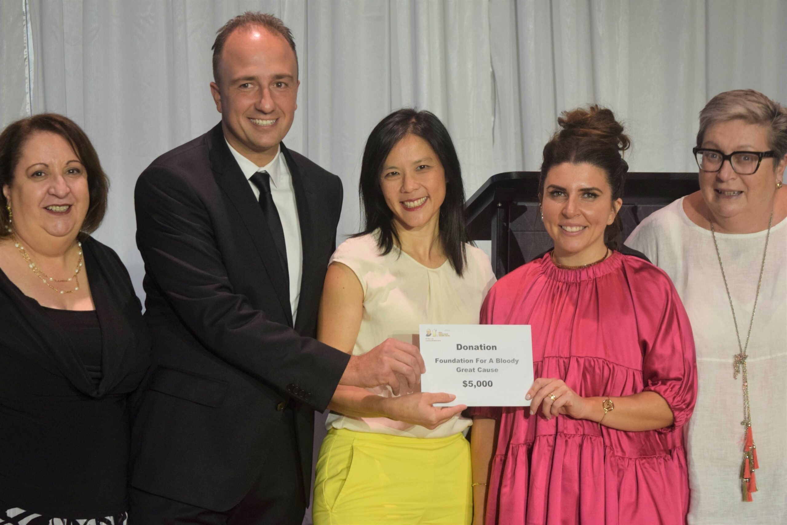Charity's Board Member); Marie Piccin (Foundation For A Bloody Great Cause); Deputy Mayor Stephanie Di Pasqua and Mayor Angelo Tsirekas (City of Canada Bay).