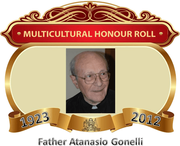 The Community Relations Commission for a multicultural NSW, placed Father Atanasio Gonelli on the 2012 NSW Multicultural Honour Roll